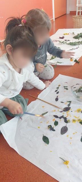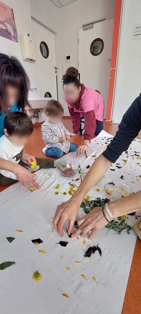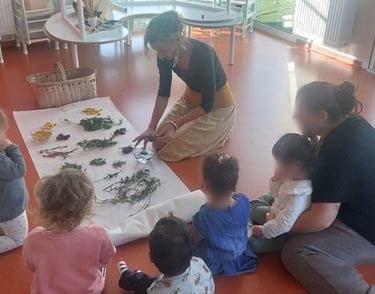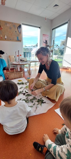 Cet atelier a été pensé comme un moment ludique et sensoriel, permettant aux enfants de se relier à la nature par leurs sens. Les rires, les “oh !” ou les grimaces et les gestes délicats pour sentir ou caresser les feuilles ont rythmé la séance.