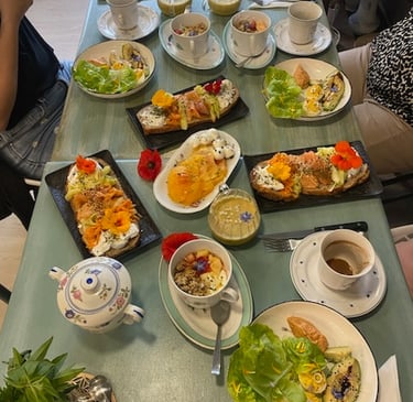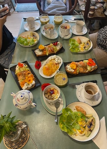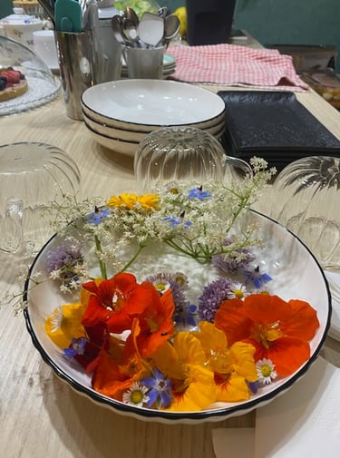 Autour d’un brunch gourmand, les participants ont savouré des préparations à base de plantes sauvages et du jardin : tartinades vertes, infusions fleuries, pestos colorés, desserts parfumés...