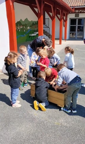 Mars 2023 – Au cœur des Aldudes, dans la magnifique Vallée de Baïgorry, le mois de mars a rimé avec terre, mains dans le terreau et éclats de rire. L'Atelier École Basque a mené une initiative pleine de sens : une journée dédiée à la création de jardiniéres pédagogique, un projet essentiel pour reconnecter les enfants au vivant et à l'importance des légumes de saison.