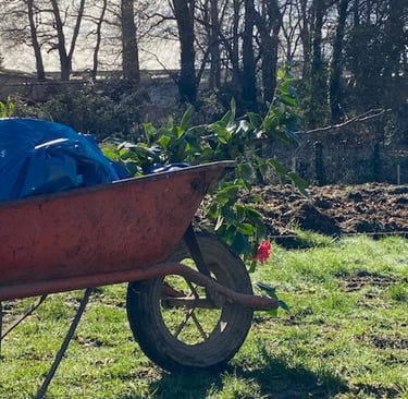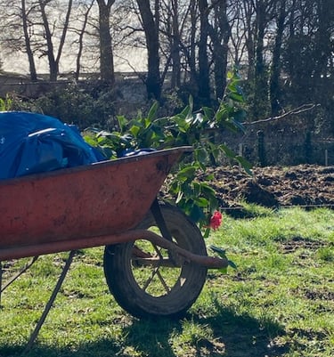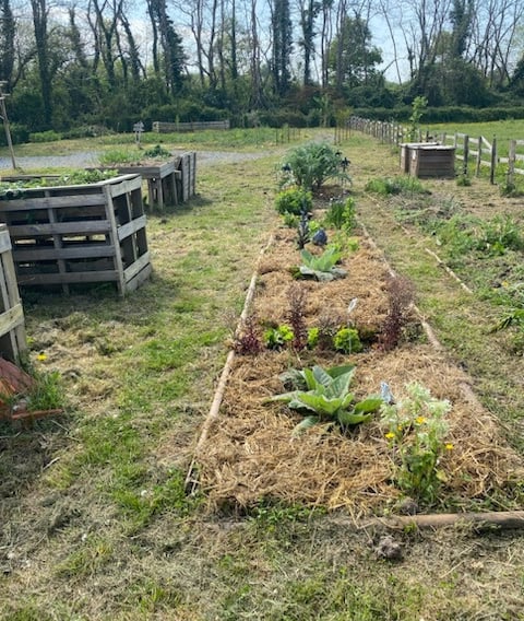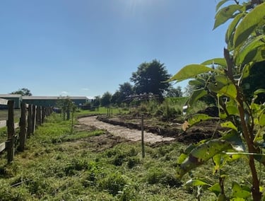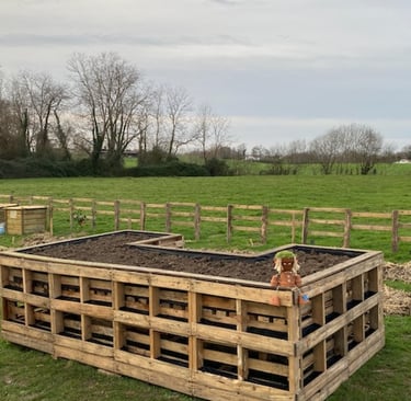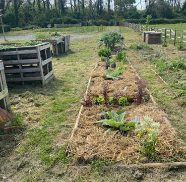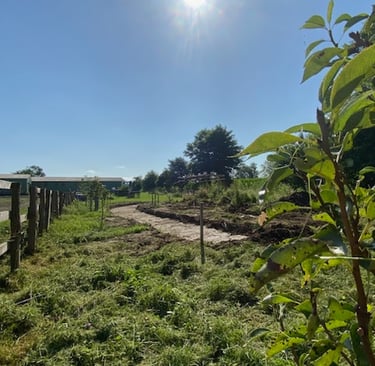 Parallèlement, un travail de délimitation des différentes parcelles a été réalisé, permettant de structurer le jardin en zones distinctes : potager, coin aromatique, espace détente, zone compost, et future serre.