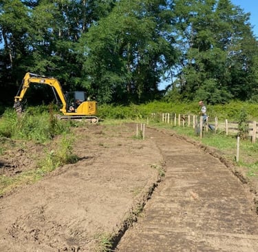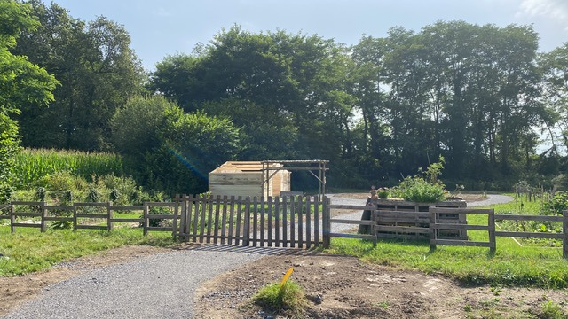 Afin de rendre le jardin véritablement inclusif, un terrassier est intervenu pour créer des chemins d’accessibilité.