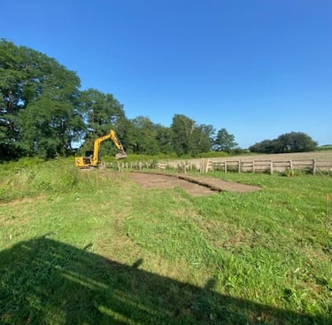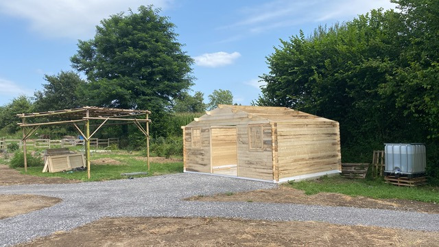 Pour permettre la tenue des ateliers thérapeutiques par tous les temps, une chape en béton a été préparée en vue de l’installation d’un chalet d’accueil.