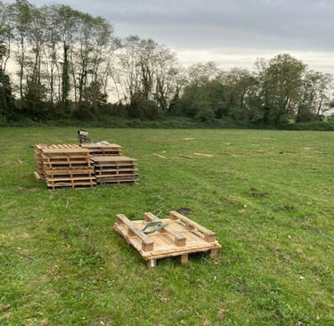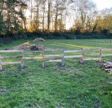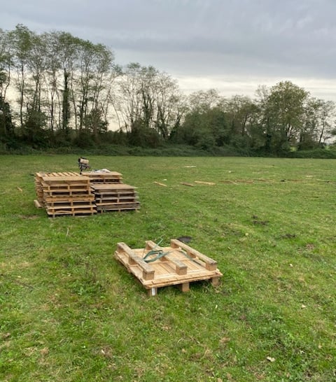 Les barrières ont été construites à partir de planches de palettes recyclées, donnant au lieu une touche à la fois rustique et écologique.