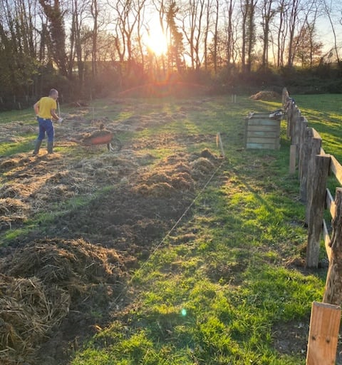 Au lieu du motoculteur, c’est la grelinette qui a été utilisée : un outil manuel qui décompacte sans retourner la terre, respectant ainsi la vie du sol et toute la microfaune indispensable à son équilibre.