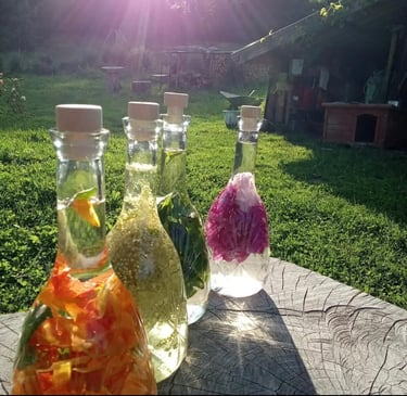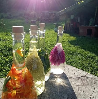 Le lieu, à la fois authentique et enchanteur, est entouré de prairies, de fleurs et de plantes médicinales cultivées avec respect et passion.