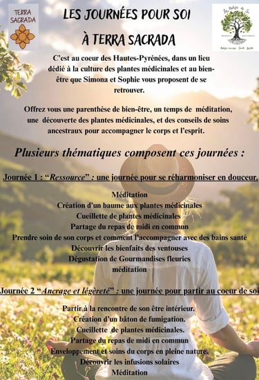 Ensemble, nous souhaitons offrir un moment unique et ressourçant, dans un cadre qui célèbre à la fois la terre, les traditions et le bien-être intérieur.