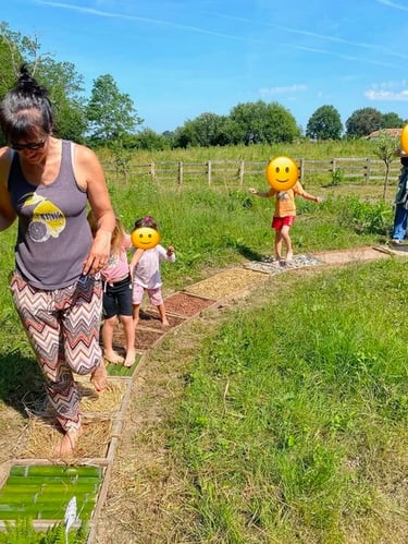 Avril 2024 – Deux ans après la création de notre jardin thérapeutique (lancé fin 2022), nous sommes ravis de vous annoncer une nouvelle étape excitante dans l'évolution de cet espace de bien-être : l'inauguration d'un Sentier Sensoriel Pieds Nus !